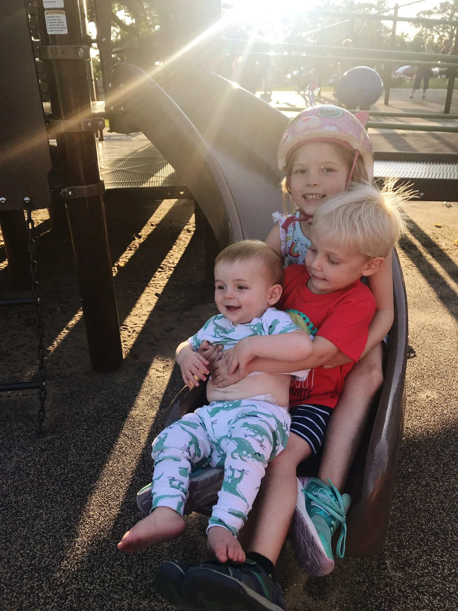 Usually evening play time, if we happen to be feeling spontaneous, will be spent at our beach until the days grow too cold. Unfortunately, due to an ecolli outbreak, the beach closed in early August for the REST OF THE SEASON. I was devestated. And then I remembered all the little things I always want to do in the summer but forget to leave time for. Like putting on pajamas after dinner and surprising the kids (and Dad when he drove up late) with a bike ride and playground pajama party. Summer isn’t just fun at the beach. Its the spontaneity that makes it the most memorable.