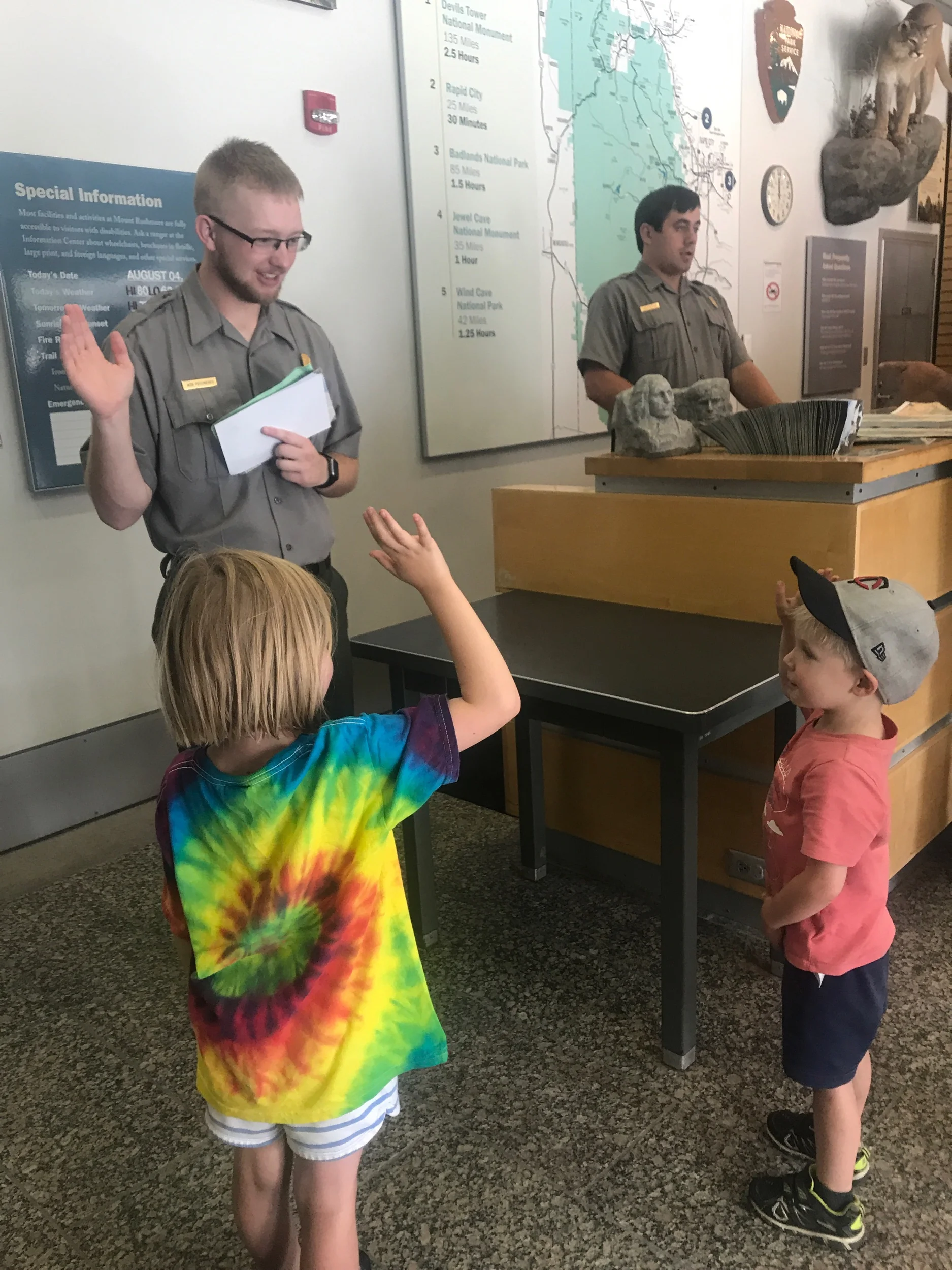 2 National Park Junior Rangers sworn in. Also swore to never go to Mount Rushmore during a nationally recognized motorcycle rally (Sturgis is a thing in which we are now familiar)