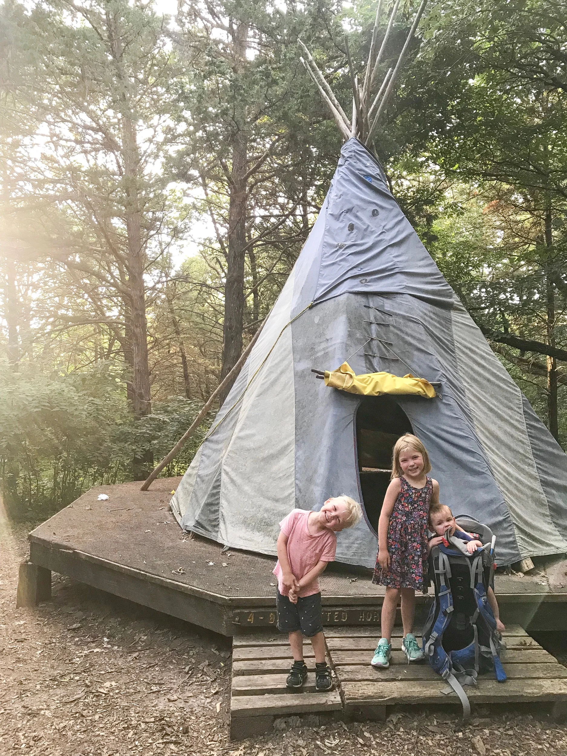 2 Campsites, one by a lake minutes from Mount Rushmore, and one night spent in a teepee in Nebraska. We also learned teepees do not allow for great air circulation but they do allow for the entry of bugs.